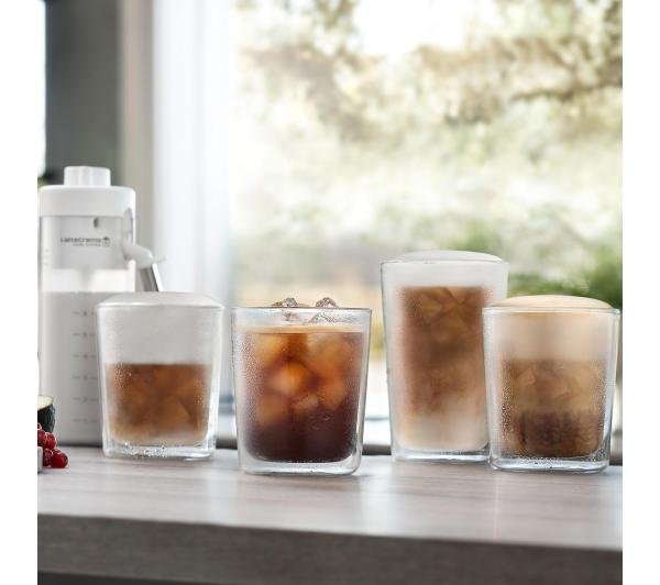 - Dostępne napoje: Americano, Caffe Latte, Cappuccino, Cortado, czarna kawa, Doppio, Espresso, Espresso Macchiato, Flat White, gorąca woda, herbata czarna, Latte Macchiato, Long coffee, mrożona kawa, mrożone Americano, mrożone Cappuccino, mrożone Espresso, mrożone Flat White, mrożone Latte, mrożone Latte macchiato, spienione mleko