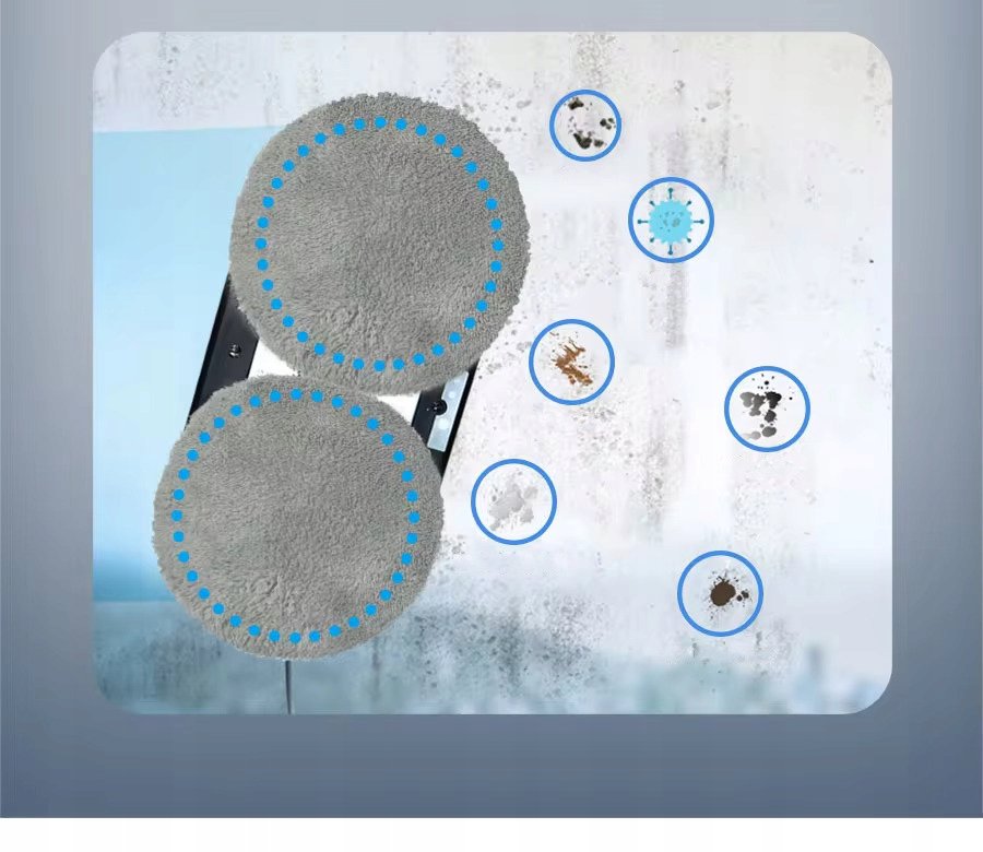 Robot do mycia szyb automatycznie dostosowuje się do powierzchni, skutecznie usuwając brud, kurz i smugi. ✨ Dzięki inteligentnemu algorytmowi poruszania się, dociera nawet do trudno dostępnych miejsc, zapewniając idealną czystość w każdym zakamarku.