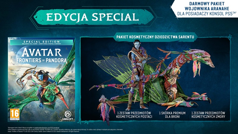 ** Wymagane konto Ubisoft. Więcej szczegółów znajdziesz pod adresem avatarfrontiersofpandora.com/PS5Cosmeticset