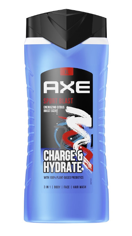 Poznaj żele pod prysznic Axe z unikalną technologią z dodatkiem prebiotyków. Ciesz się świeżością, która trwa przez wiele godzin. Axe Sport Blast to świeży energetyzujący zapach, który doda energii każdego dnia!