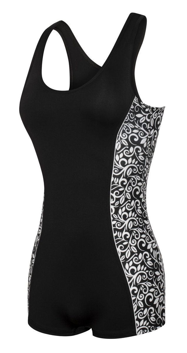 Dostępny w klasycznym czarno-białym wzorze z kwiatowym motywem, strój jest nieprześwitujący i odporny na działanie chloru oraz promieniowania UV, co czyni go idealnym wyborem na lato. Szerokie ramiączka oraz ozdobne przeszycia nie tylko zapewniają wygodę, ale również podkreślają talię, zapewniając dodatkowy efekt wyszczuplenia.