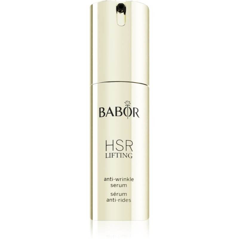 Babor HSR Anti-Wrinkle Serum - odmładzające serum liftingujące do twarzy, szyi i dekoltu o działaniu ujędrniającym i liftingującym, które działa kompleksowo na wszystkie rodzaje zmarszczek oraz zwalcza przyczyny ich powstawania, zapewniając każdej wymagającej skórze wielowymiarowy lifting. Polisacharydy z glediczji trójcierniowej (Gleditsia triacanthos) tworzą na powierzchni skóry trójwymiarową sieć błyskawicznie i długotrwale wygładzając i napinając skórę. Kwas hialuronowy intensywnie zaopatruje w wilgoć i wspomaga jej wiązanie w skórze. Pantenol łagodzi podrażnienia, wspiera proces regeneracji oraz działa kojąco na naskórek.