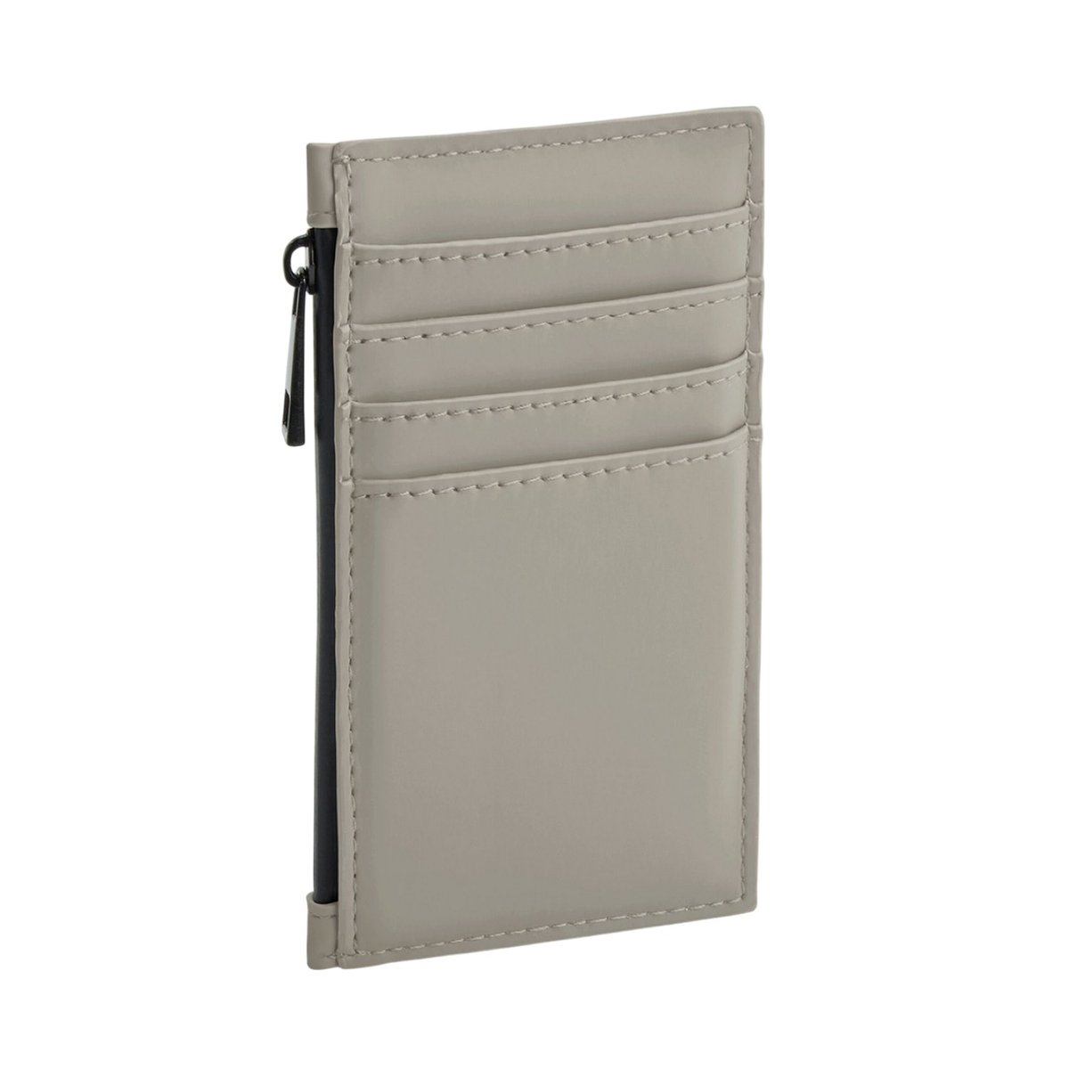 100% poliester z recyklingu. Materiał: powłoka PU. Długość: 13 cm. Szerokość: 7 cm. Wzór: matowy, gładki. Przedziały: 1 komora główna. 4 miejsca na karty. Zapięcie: zamek błyskawiczny. Nadaje się do: