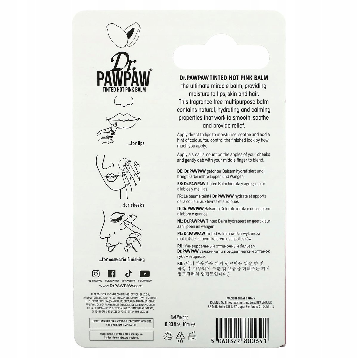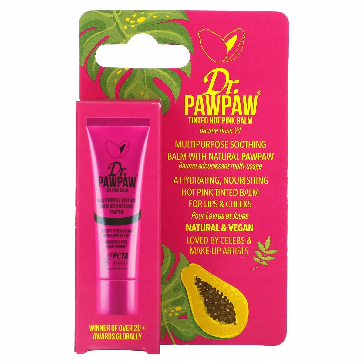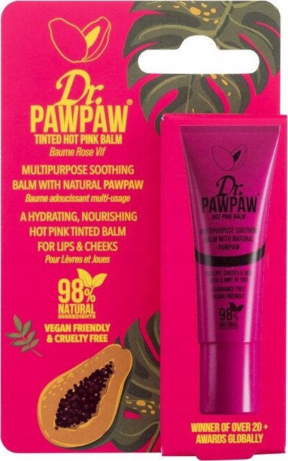 - Balsam do ust Dr.PAWPAW Tinted Hot Pink można stosować na różne sposoby na ustach, policzkach i powiekach. Natychmiast rozjaśnij swoją cerę dzięki temu kolorowi, który można zbudować, idealnie do rozwiązania i wieczornych rozkładów