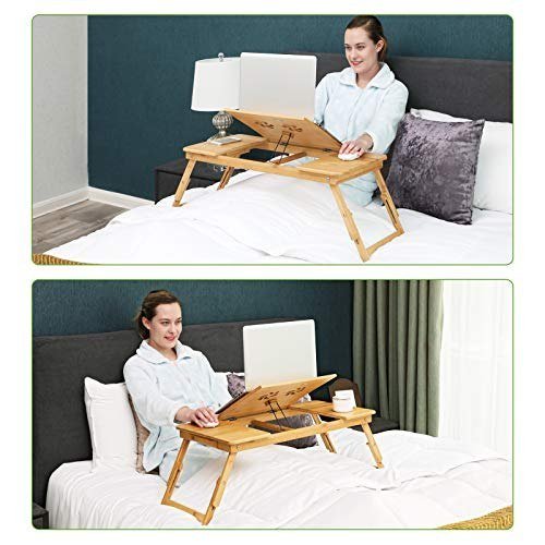 Bambusowe biurko laptopa, składany stół do łóżka, dla leworęcznego, praworęcznego, sofy regulowanej wysokości, 72 x (21-29) x 35 Poleć ergonomiczne koszmary: często spędzaj godziny w łóżku lub na ...