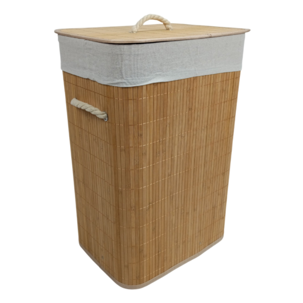 Praktyczny kosz wykonany z naturalnego bambusa pomaga utrzymać ład w łazience i pralni. Lekka, a jednocześnie stabilna konstrukcja, miękkie sznurkowe uchwyty po bokach oraz dopasowana pokrywa ułatwiają codzienne użytkowanie. W środku znajduje się materiałowy worek - wyjmiesz go jednym ruchem, by przenieść pranie do pralki. Pojemność 72 l sprawdzi się w codziennym użytkowaniu całej rodziny.