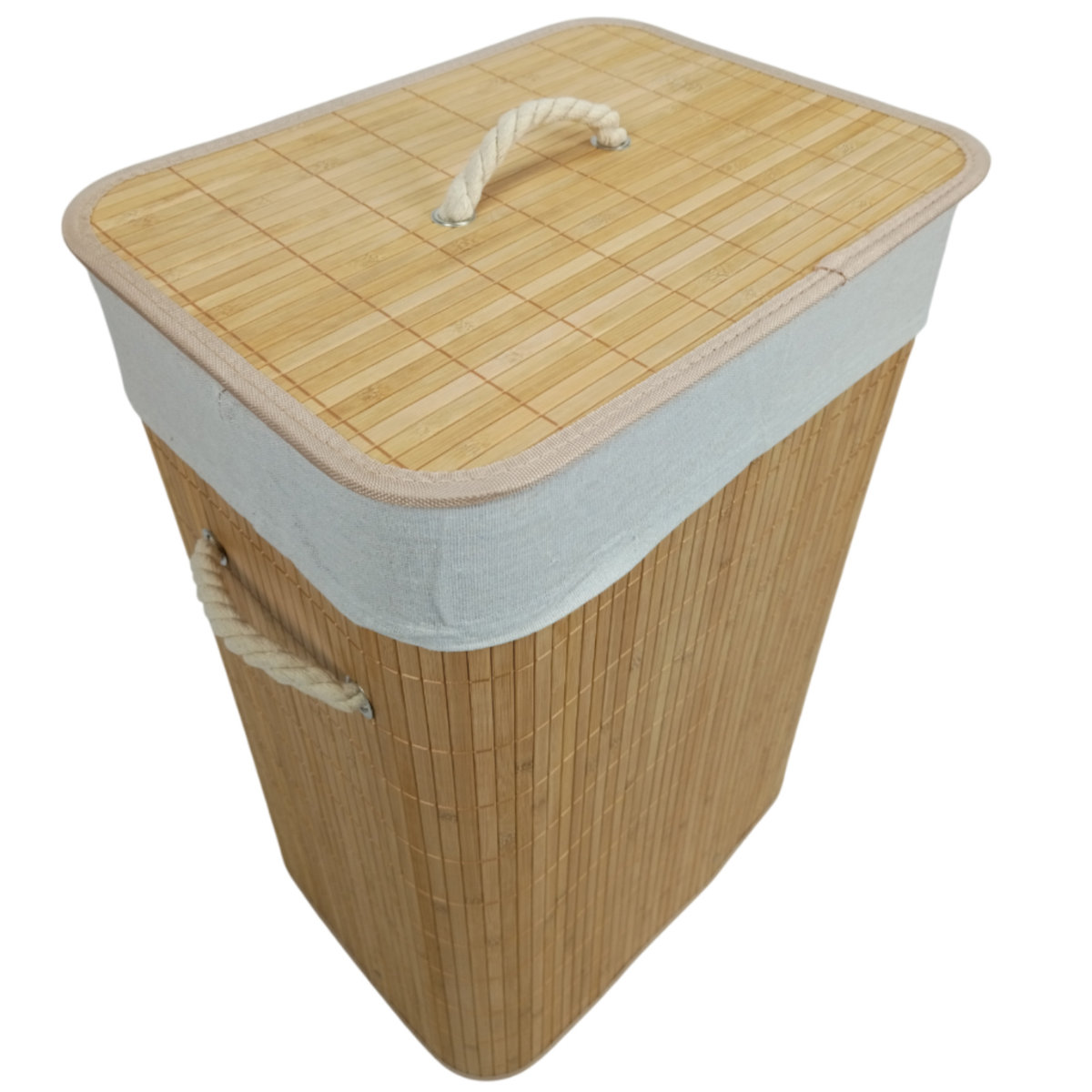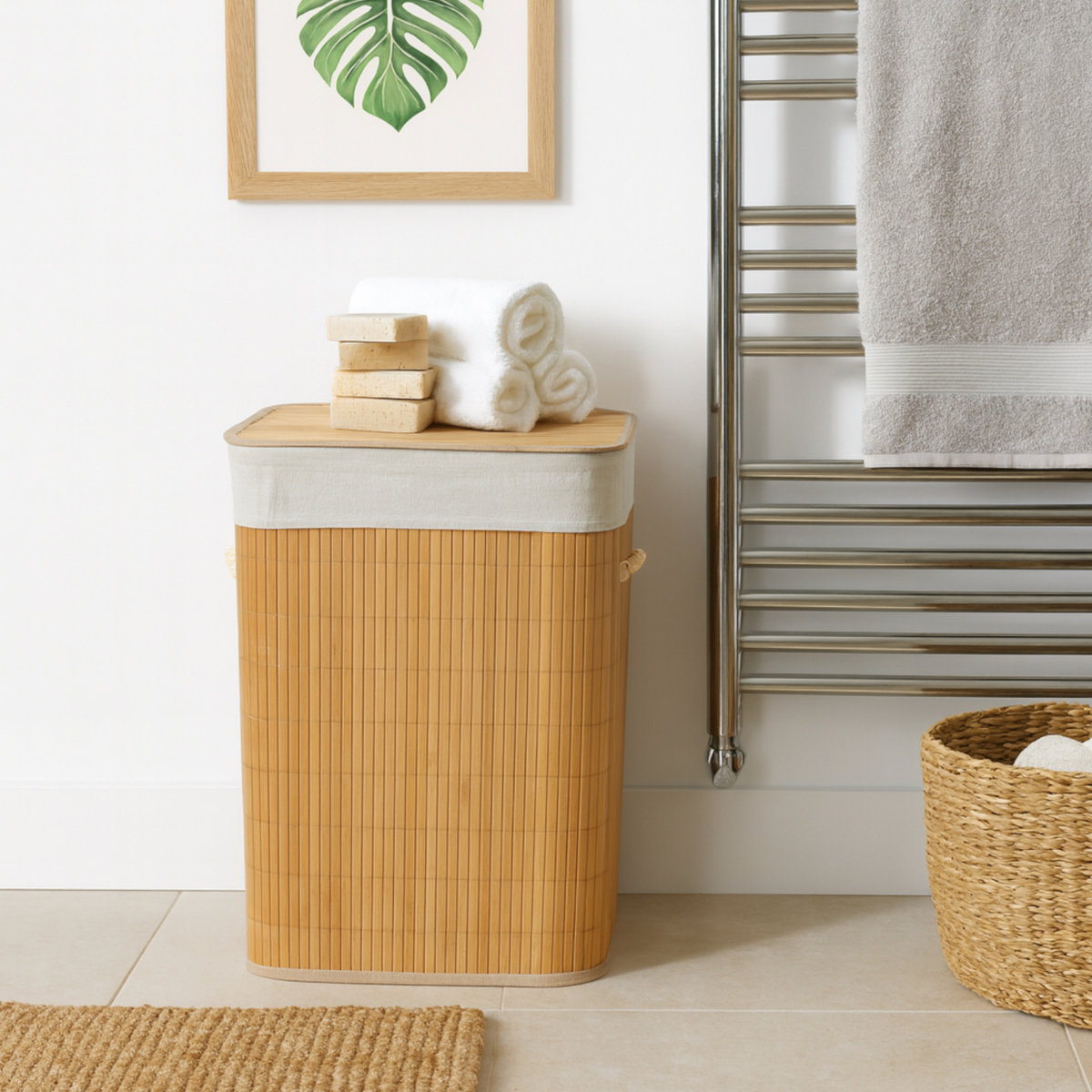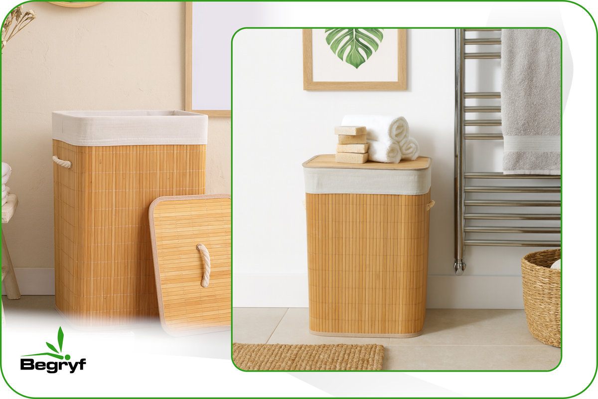 Bambusowy kosz na pranie z pokrywą i workiem - naturalny porządek w łazience