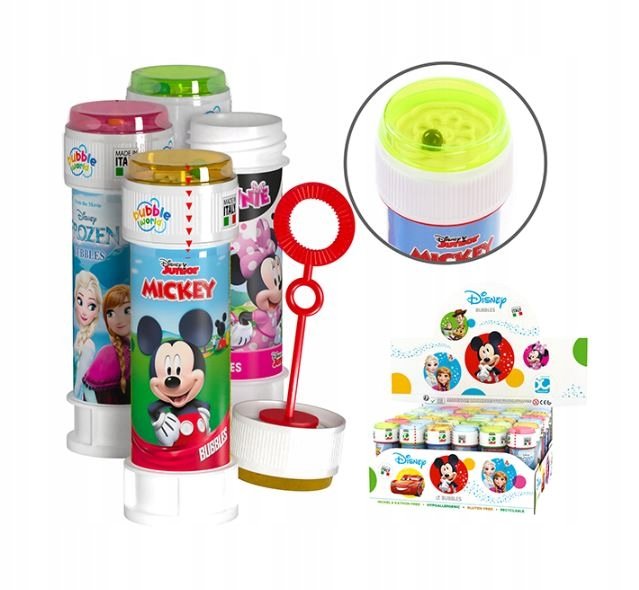 bańki mydlaneozdobione motywem licencji Myszka Miki pojemność: 60 ml opakowanie posiada na nakrętce grę zręcznościową