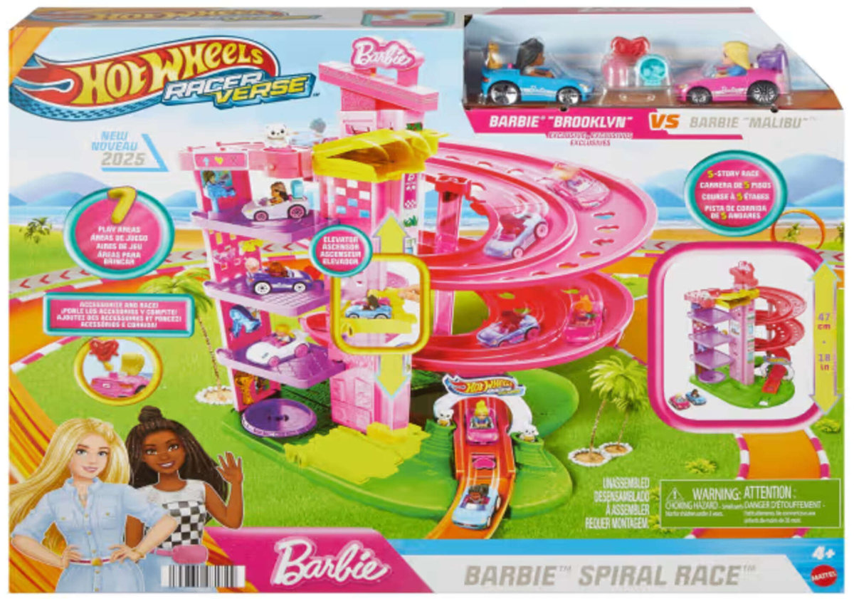 Hot Wheels Racerverse Barbie Spiral Race Track Set to idealne połączenie szybkiej akcji i stylowego świata Barbie, które zapewni Twojemu dziecku godziny kreatywnej i ekscytującej zabawy!