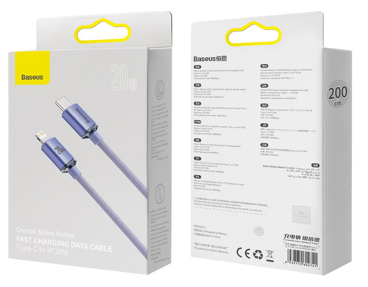 - Model: Crystal Shine Series Fast Charging Data Cable Type-C to iP 20W 2m Purple
