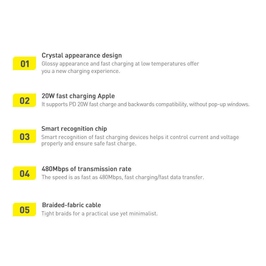 Najważniejsze zalety kabla Baseus Crystal Shine Series USB Typ C - Lightning: