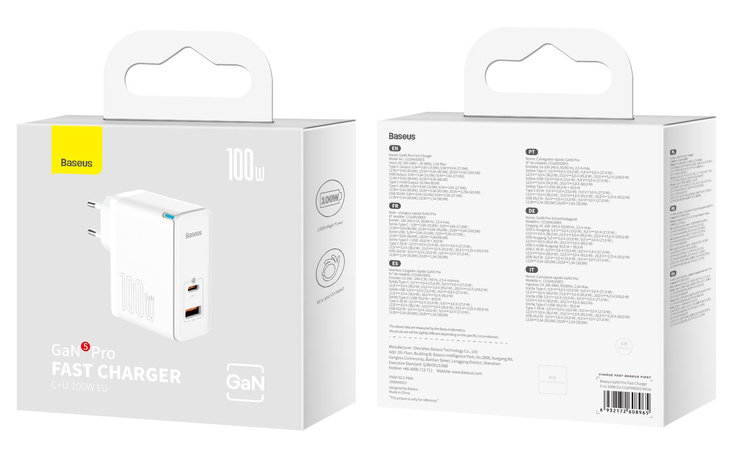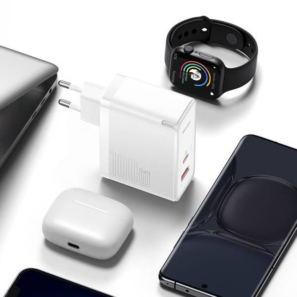 - Nazwa: Baseus GaN5 Pro Fast Charger C+U 100W EU White (With Mini White Cable Type-C to Type-C 100W(20V/5A) 1m
