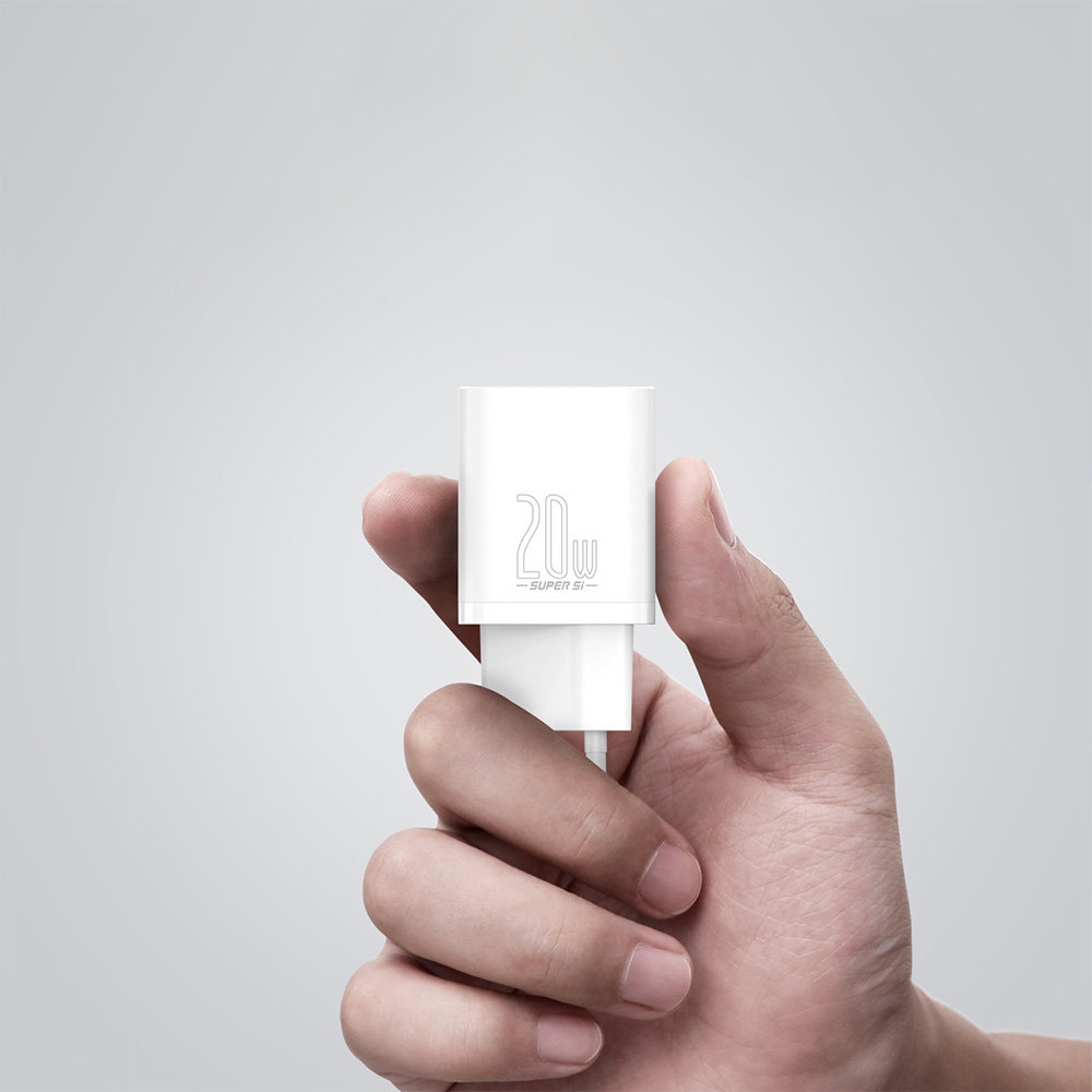 BASEUS Mini Ładowarka Sieciowa USB-C z kablem USB-C Lightning PD20W - to urządzenie wyposażone w port USB-C kompatybilny z technologią Quick Charge 3.0 oraz Power Delivery 3.0 20W, dzięki któremu możemy szybko naładować najnowsze urządzenia marki Apple, ale również niektóre laptopy wspierające ładowanie z portu USB-C. Zaawansowany system zarządzania energią zapewnia optymalny prąd ładowania. Ładowarka posiada system ochrony zapewniający stabilną i bezpieczną pracę, eliminując ryzyko uszkodzenia ładowanego urządzenia. Niewielki rozmiar produktu umożliwia jego użycie w praktycznie każdych warunkach, nawet podczas podróży. W zestawie z ładowarką znajduje się również kabel BASEUS USB-C Lightning PD 20W o długości 1m.