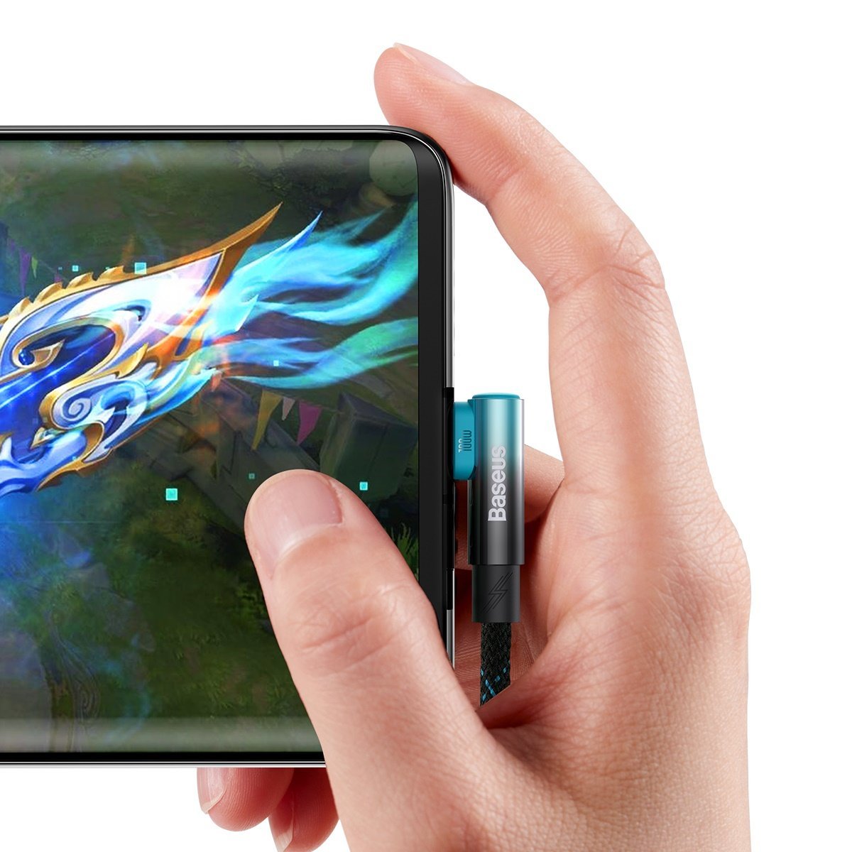 Boczny wtyk zmniejsza niebezpieczeństwo uszkodzenia kabla i zwiększa wygodę jego użytkowania. Kabel idealny dla graczy, ponieważ nie utrudnia grania oraz umożliwia odpowiedni chwyt telefonu. Został wykonany z wysokiej jakości TPE i umieszczony w mocnym oplocie z nylonu i żyłki wędkarskiej dzięki czemu jest trwały i wytrzyma bardzo wiele. Design kabla oraz materiały, z których powstał, ograniczają plątanie się akcesorium. Natężenie rzędu 5A, 100W mocy i cynowany, miedziany przewód są gwarancją szybkiego i bezpiecznego odnawiania energii. Produkt przeznaczony do pracy ze wszystkimi urządzeniami z portem USB Typ C.