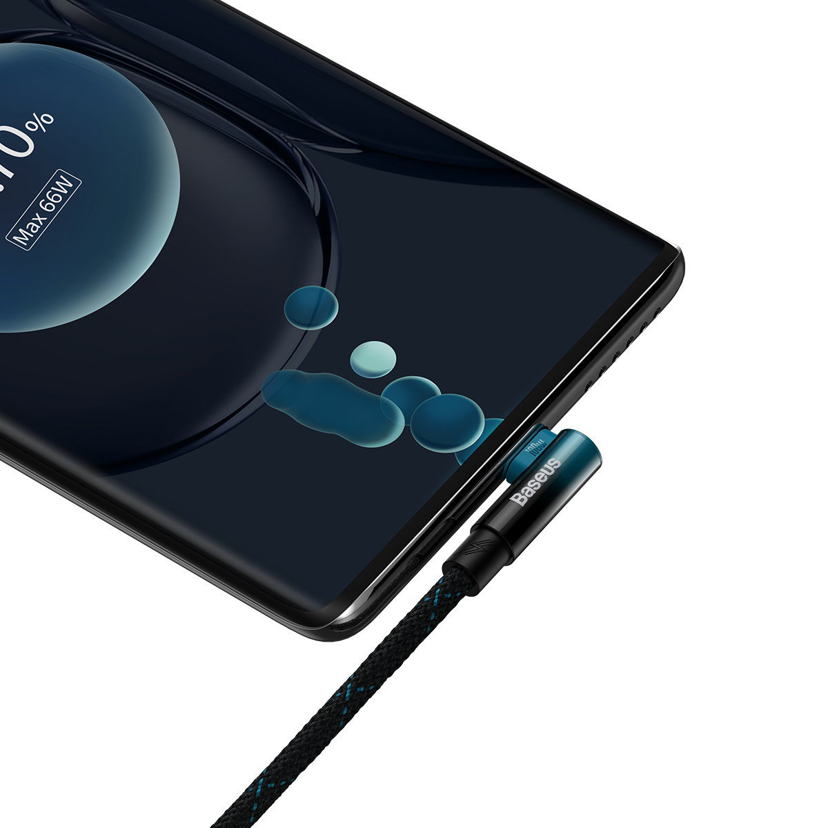 Baseus MVP 2 Elbow kątowy kabel przewód Power Delivery z bocznym wtykiem USB / USB Typ C 2m 100W 5A niebieski (CAVP000521)