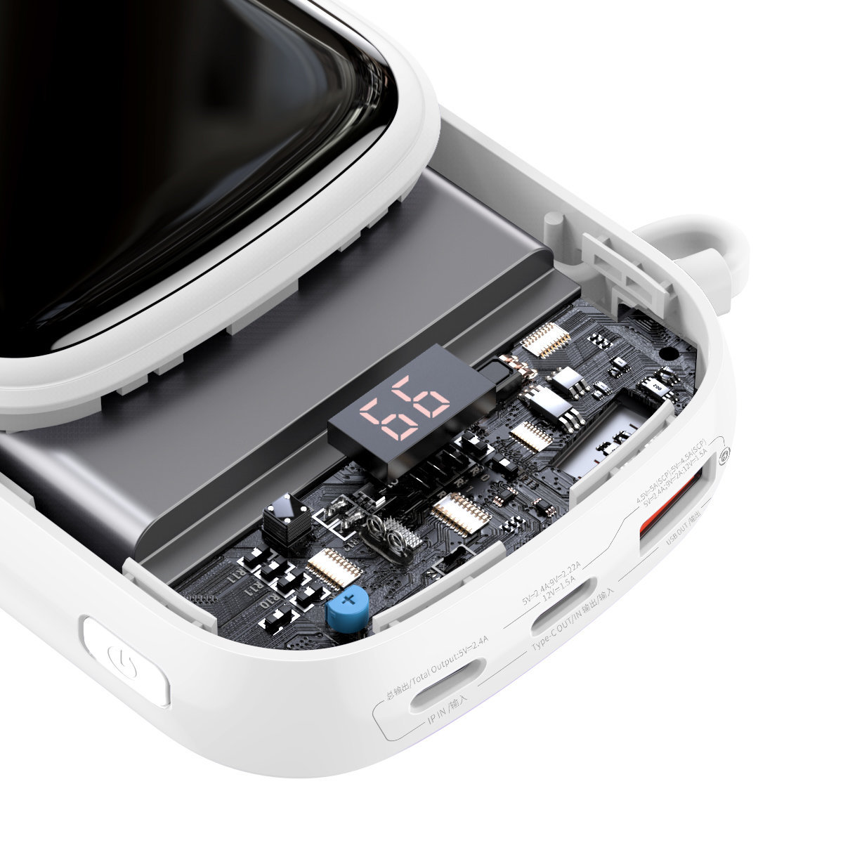 Baseus Qpow Digital Display powerbank z szybkim ładowaniem 20000mAh 20W QC/PD/SCP/FCP z wbudowanym kablem Lightning biały