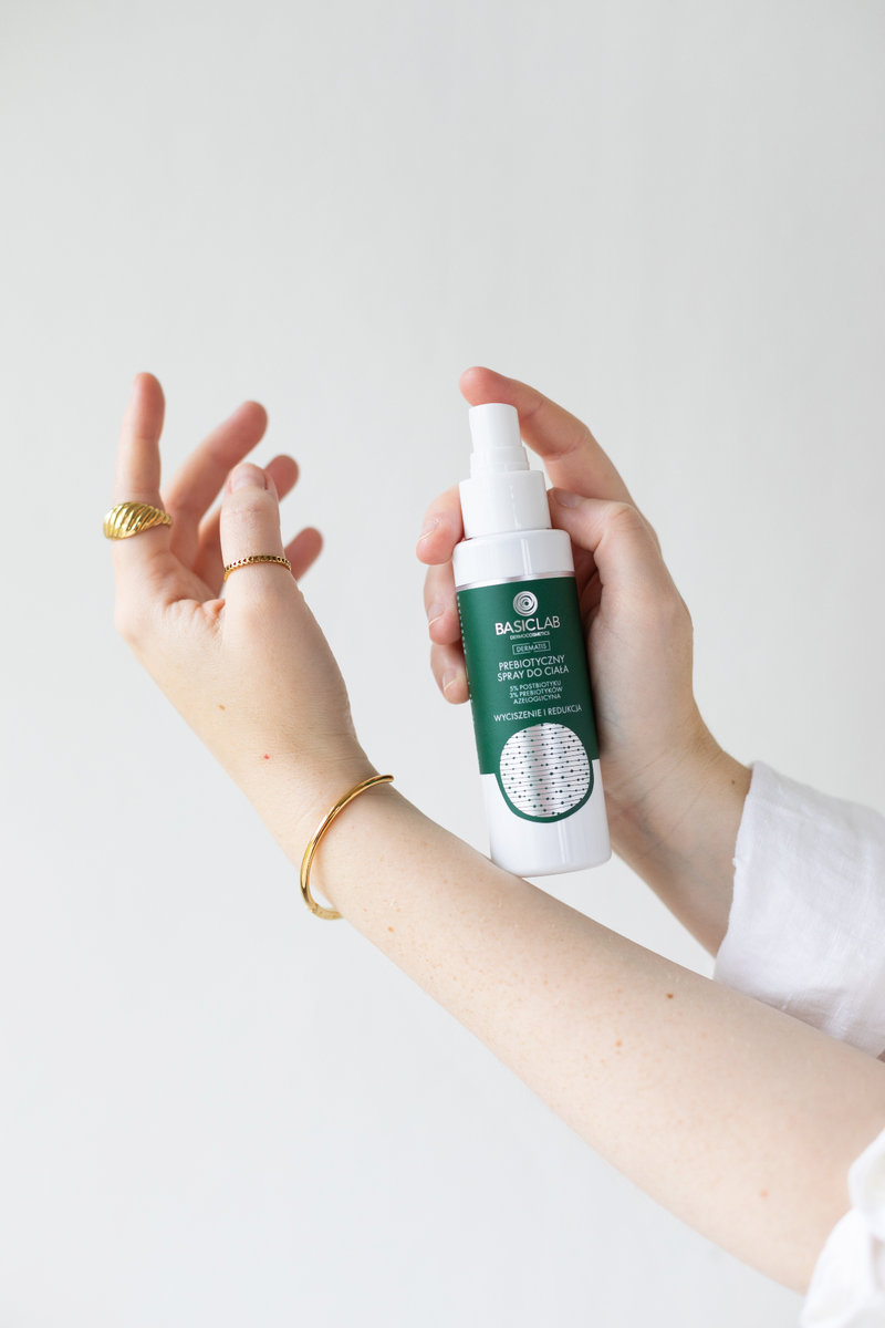 Właśnie zrecenzowałem BasicLab, Prebiotyczny Spray do Ciała do Skóry Wrażliwej Problemowej, 100 ml