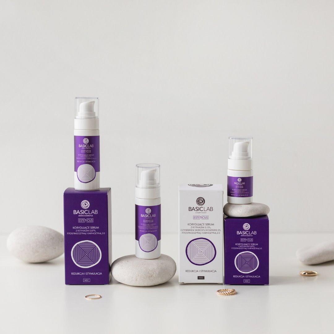 | Nazwa: | BasicLab, Serum korygujące z retinalem, Serum do twarzy na noc | Pojemność: 30 ml |