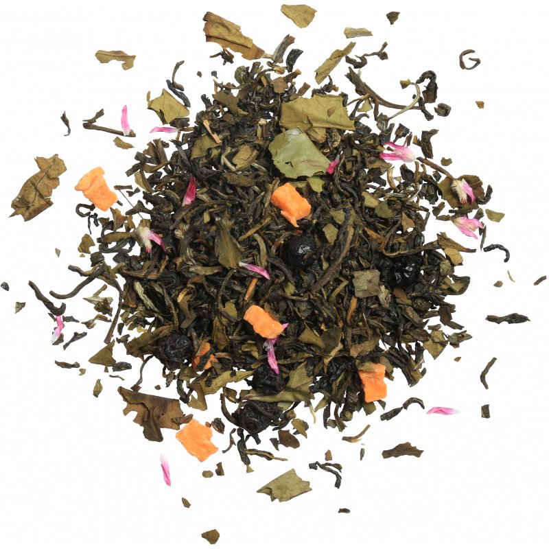 | Skład: | biała herbata z innego regionu (80,7%), czarna porzeczka (8%), papaja (5%), szarłat (0,3%) oraz aromat owoców leśnych (6%). |