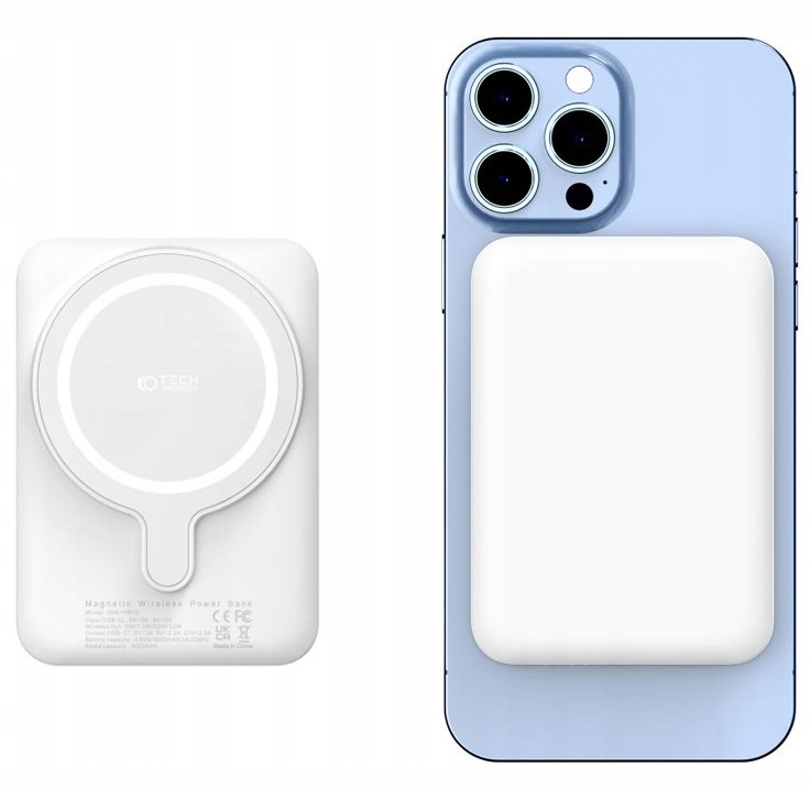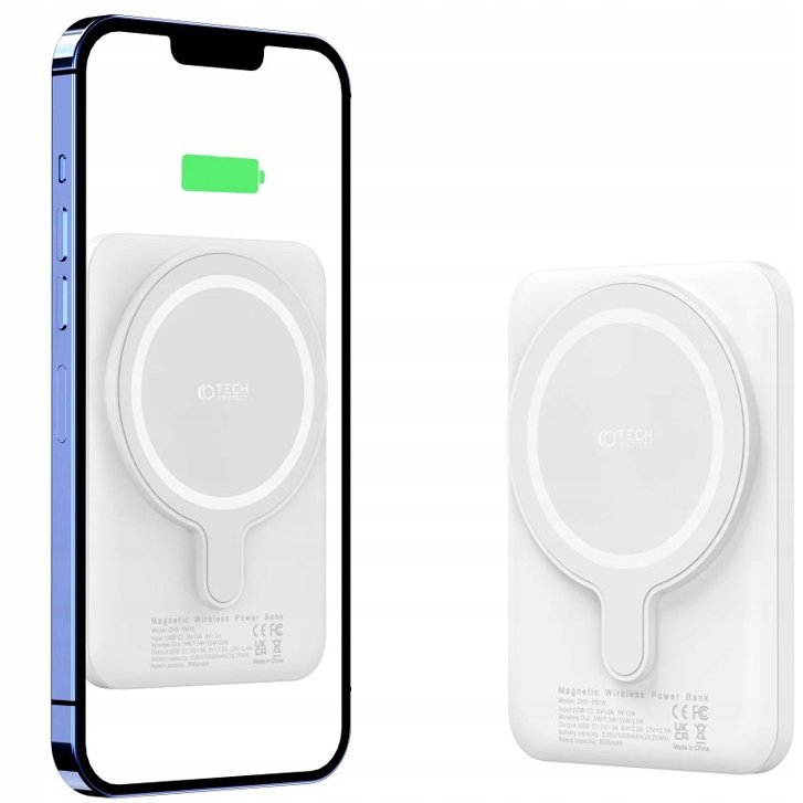 Tech-Protect PB10 LifeMag powerbank indukcyjny 5000mAh 15W* Funkcja magnetyczna MagSafe działa tylko i wyłącznie bezpośrednio do telefonu lub do etui z wbudowanym oczkiem magnetycznym o zastosowaniu ...