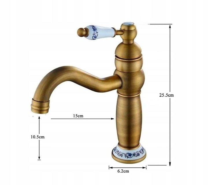 Kolor piękny mosiądz ozdobny wzorek - porcelana Koszyk na akcesoria Deszczownica 20 cm Słuchawka prysznicowa Niesamowity Design w stylu Retro Wysoka jakość wykonania Regulowana wysokość wykonanie- mosiądz , stal 304 SUS Bateria umywalkowa OLD RETRO MOSIĄDZ