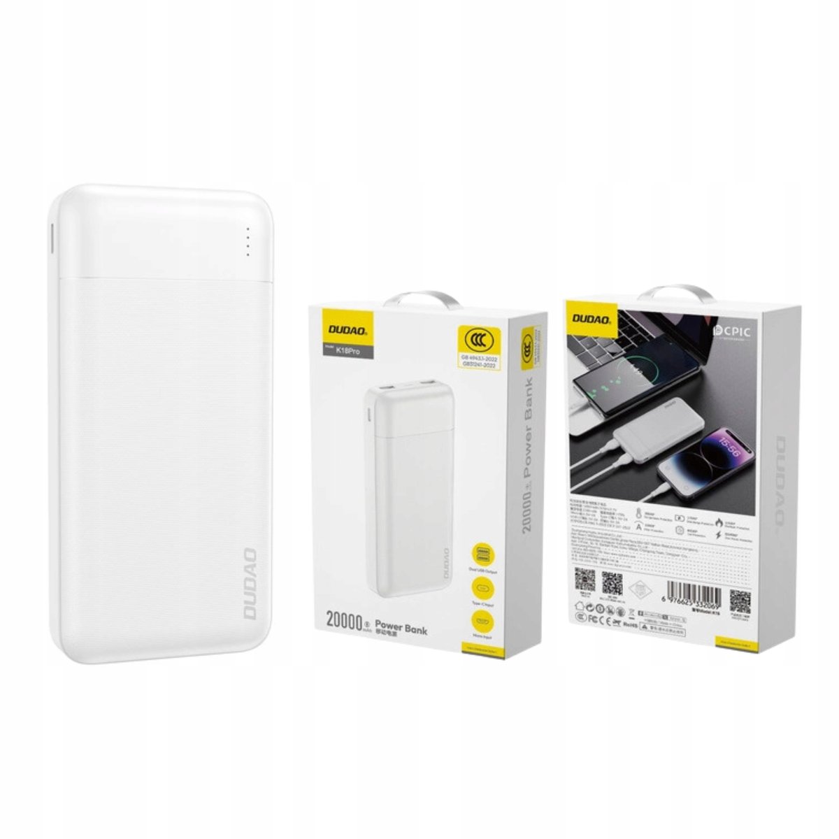 Powerbank Dudao K18 Pro wyróżnia się solidną konstrukcją i nowoczesnym designem. Jest lekki, wytrzymały i kompaktowy, co sprawia, że doskonale mieści się w torbie czy plecaku, idealnie nadając się na wyjazdy czy codzienne wyzwania.