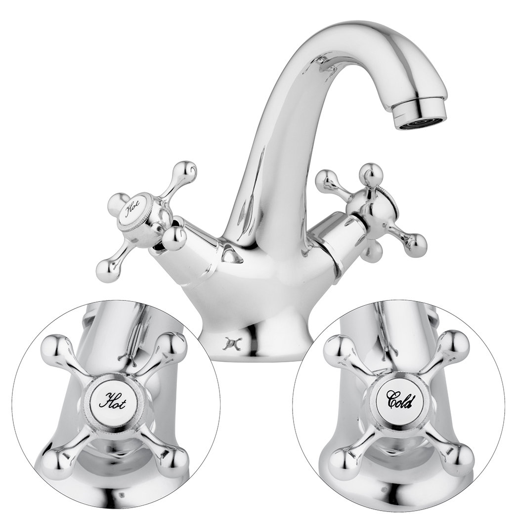 BATERIA UMYWALKOWA STOJĄCA RETRO - CHROM Mechaniczna bateria umywalkowa, stojąca, dwuuchwytowa ze stałą wylewką. Doskonałą jakość srebrnej powierzchni gwarantuje nowoczesna technologia malowania ...