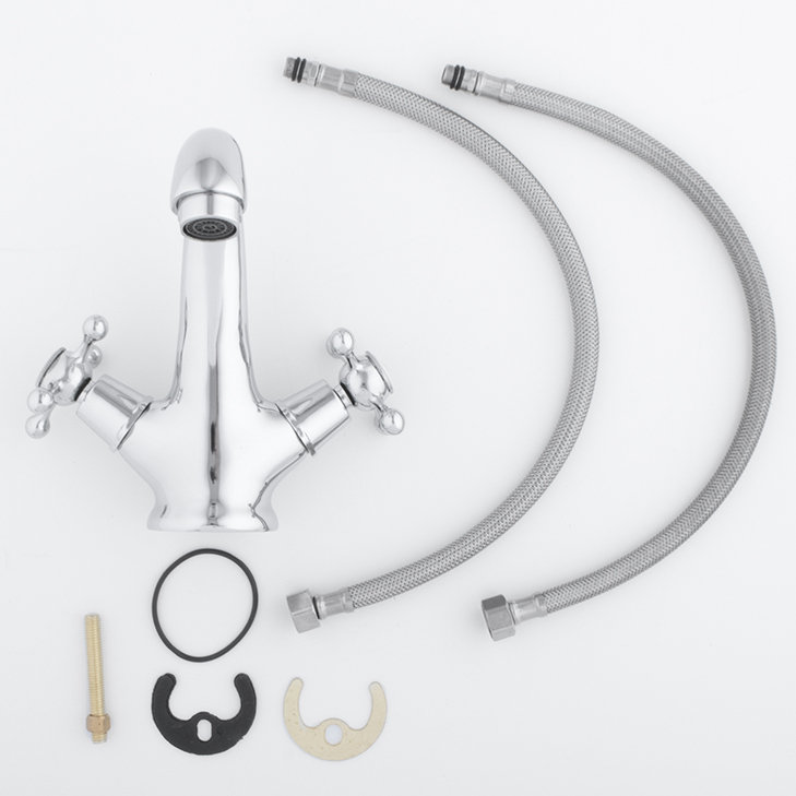 Zestaw zawiera 2 wysokiej jakości wężyki o długości 40 cm ze standardowym przyłączem 3/8 cala oraz komplet akcesoriów do montażu baterii.
