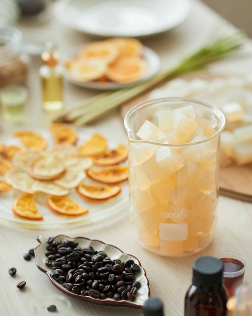 Robienie mydełek to super zabawa dla dzieci oraz dorosłych. Gotową bazę wystarczy roztopić, dodać olejki zapachowe, barwnik, ulubione dodatki np. suszoną lawendę, rozlać w foremki i mydełka gotowe do użycia!