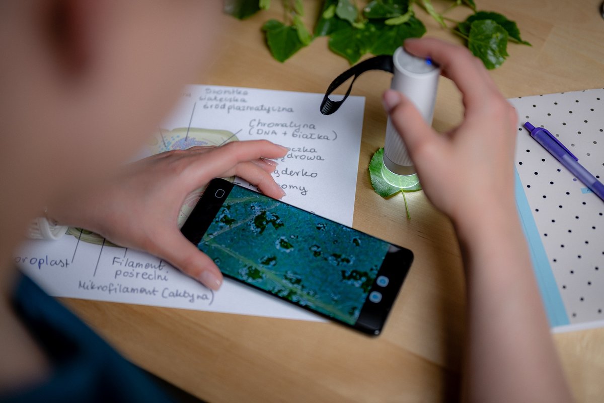 - przesyłanie obrazu z mikroskopu na ekran urządzenia mobilnego w czasie rzeczywistym