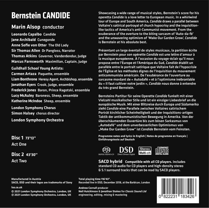 Tracklista: Candide Based on the 2004 Lonny Price production for New York Philharmonic and Marin Alsop A Comic Operetta in Two Acts Lyrics by Richard Wilbur, with additional lyrics by ...