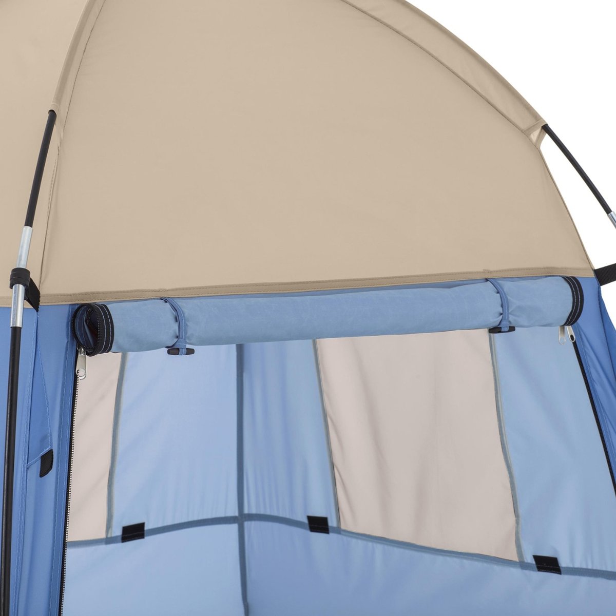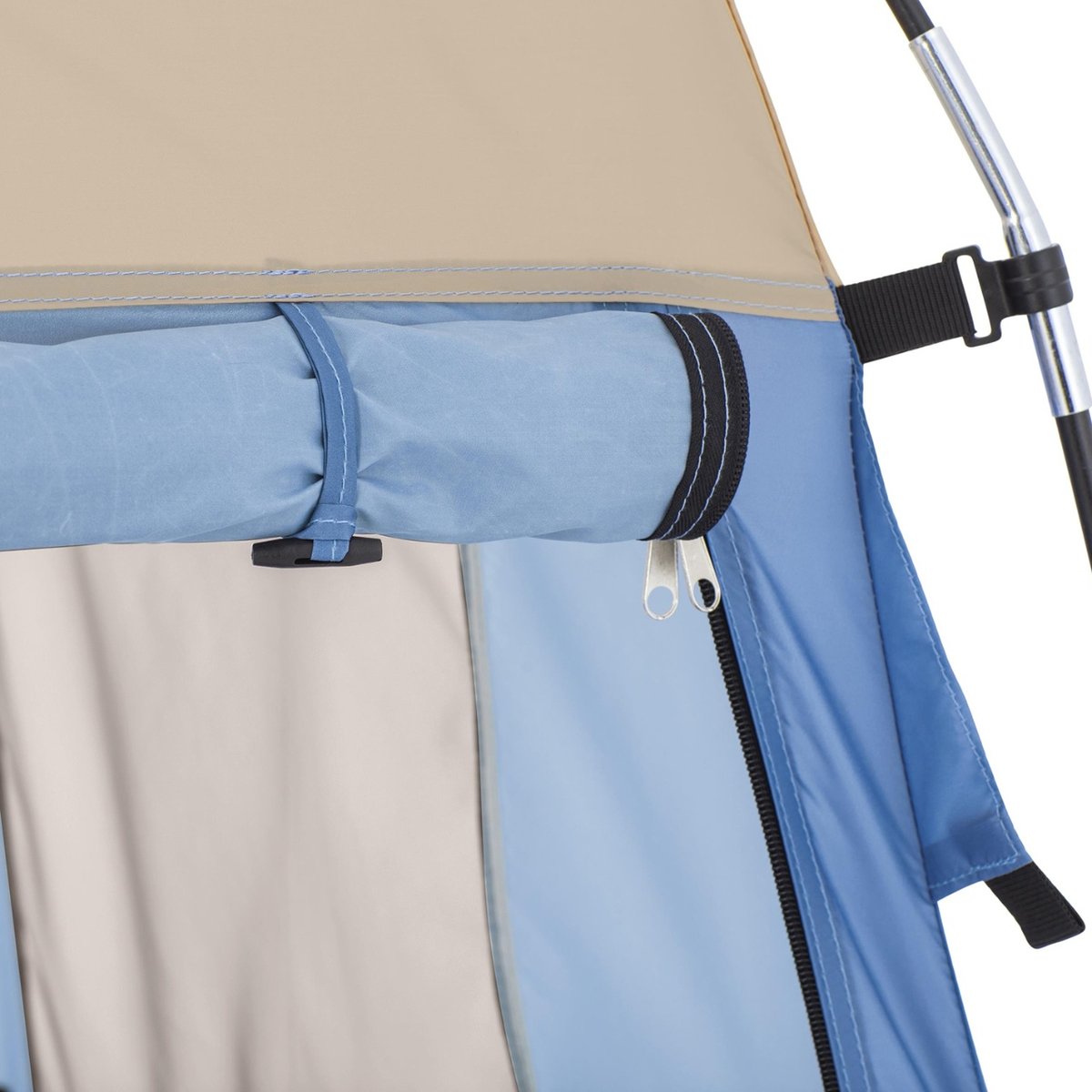 ✔️ 4w1 – produkt doskonale sprawdzi się jako przebieralnia, prysznic, WC oraz miejsce do przechowywania rzeczy. Materiał jest w pełni wodoodporny. Wejście zamykane jest na podwójny zamek, wewnątrz znajdują się 2 okienka, boczne oraz górne – dach.