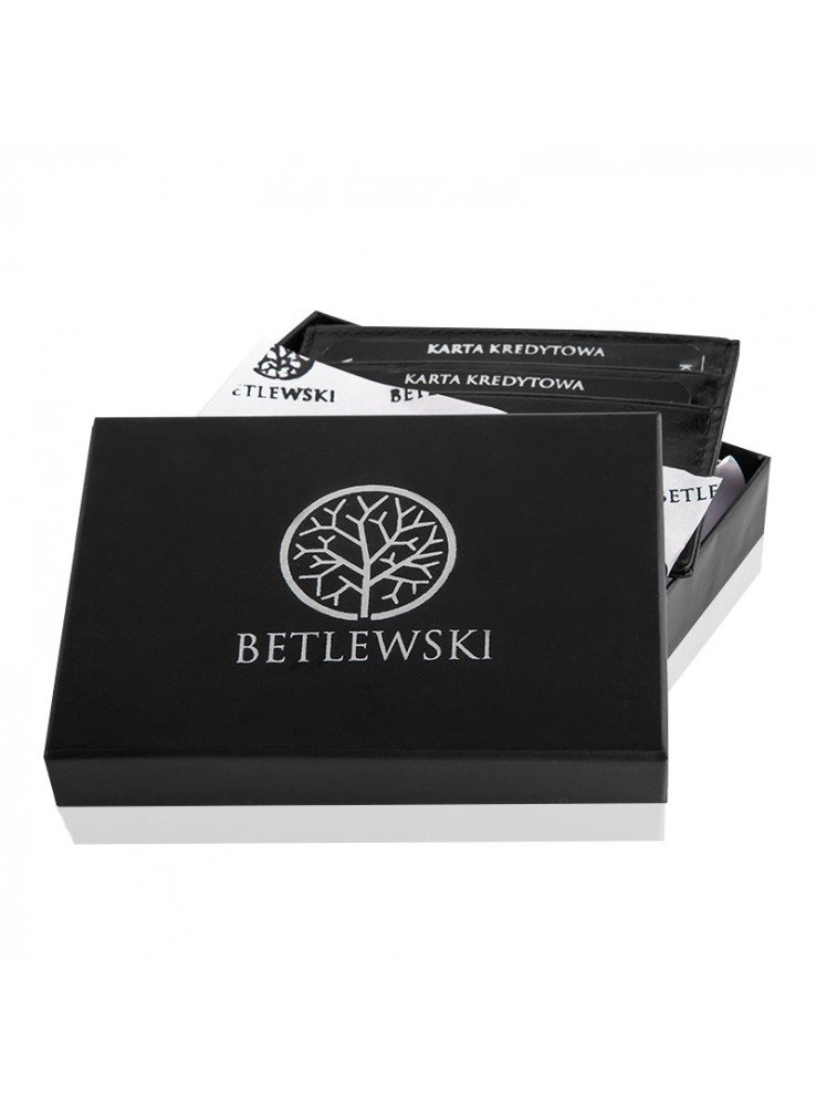 etui na karty marki Betlewski materiał wykonania: skóra naturalna na froncie znajduje się tłoczone logo marki etui posiada:- 4 miejsca na karty- 1 większą kieszonkę np. na banknoty owinięte w papier ...