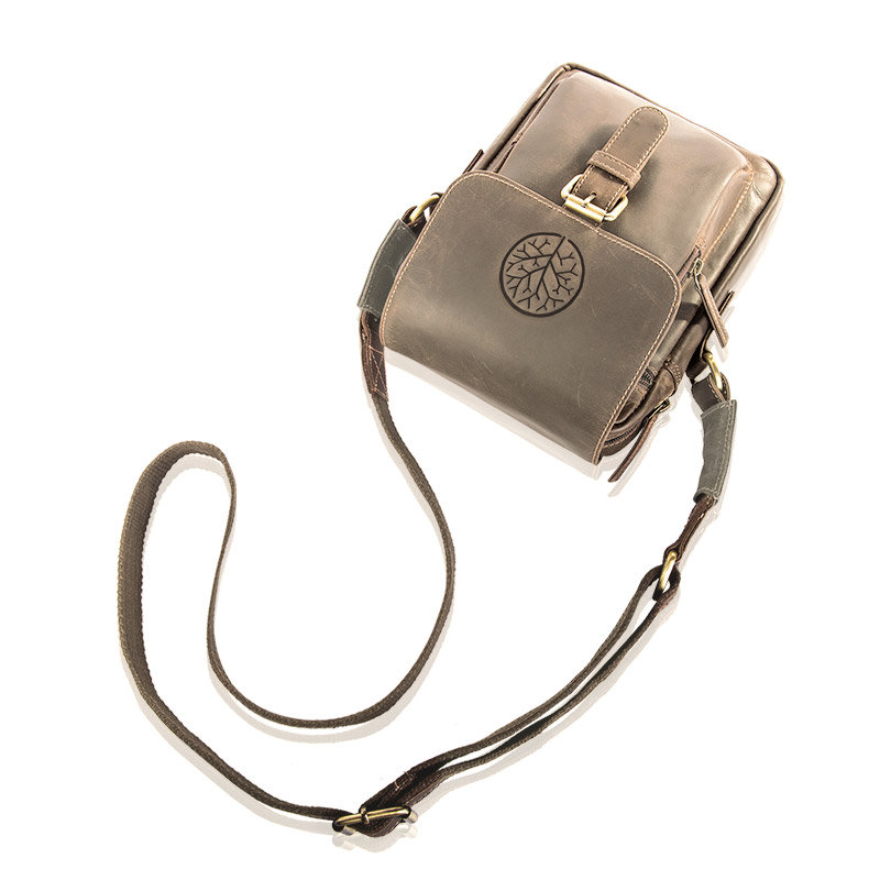 produkt składa się z: - 1 mniejszej kieszonki zamykanej na suwak - 1 poziomej kieszeni na zamek - głównej komory, również zamykanej na suwak - kieszenie wyściełane są materiałową podszewką o mocnym splocie - 1 otwartej kieszeni na spory telefon - 1 dużej kieszeni zamykanej na suwak - tylnej kieszonka na suwak - długiego, regulowanego, parcianego pasa, wzmocnionego skórą naturalną do noszenia jej na ramieniu