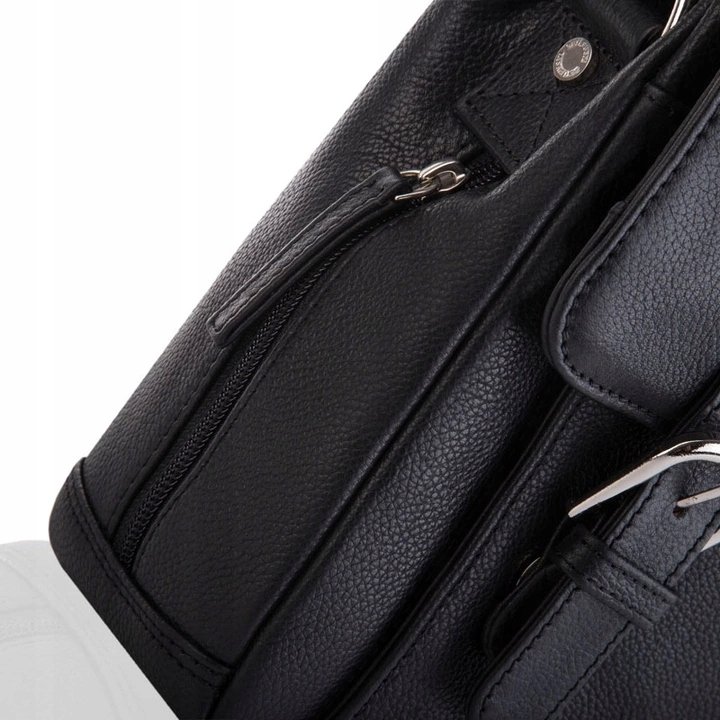 Dodatkowo pas posiada ruchomy, skórzany naramiennik. Dzięki niemu uczucie ciężaru torby zostanie zminimalizowane.