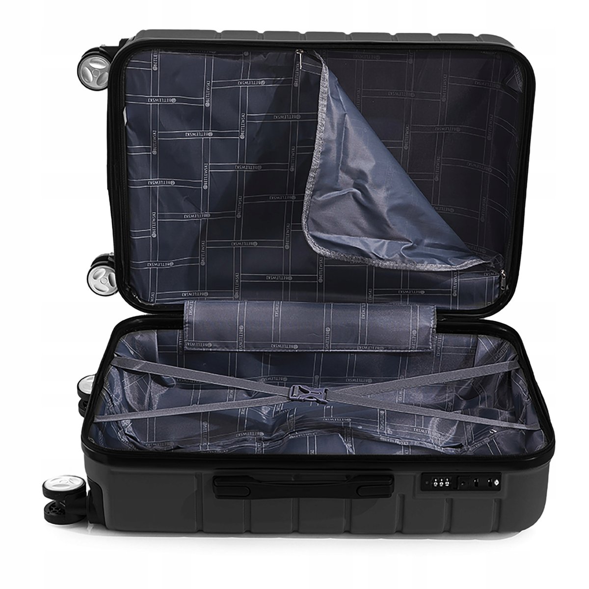Walizka wyposażona jest w gumowe, rozpinane pasy, przytrzymujące bagaż, a jej główna komora podzielona jest na dwie części funkcjonalną, zapinaną na zamek błyskawiczny przegródką.