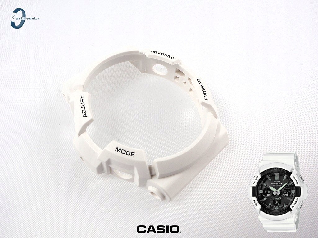 Oryginalny bezel do zegarka Casio do modeli GAW-100, GAW-100B-7A, GA-200, GA-201, GAS-100 biały matowy, napisy w kolorze czarnym.