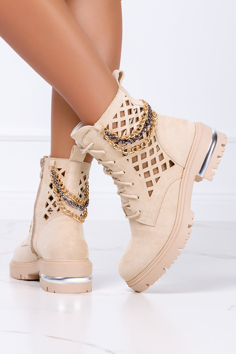 Właśnie zrecenzowałem Beżowe botki ażurowe na platformie damskie z łańcuszkiem sznurowane Casu G22X7-LB-39
