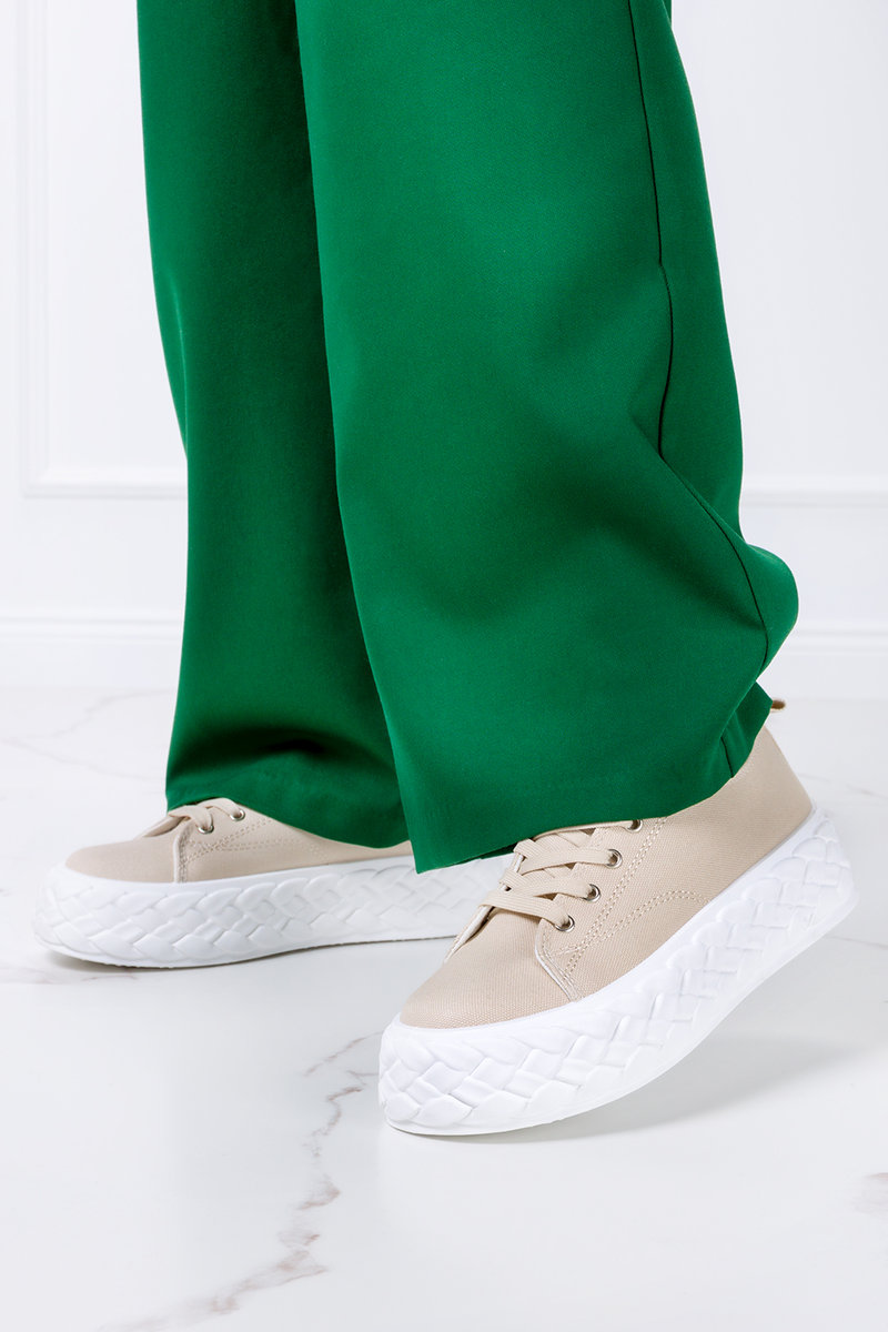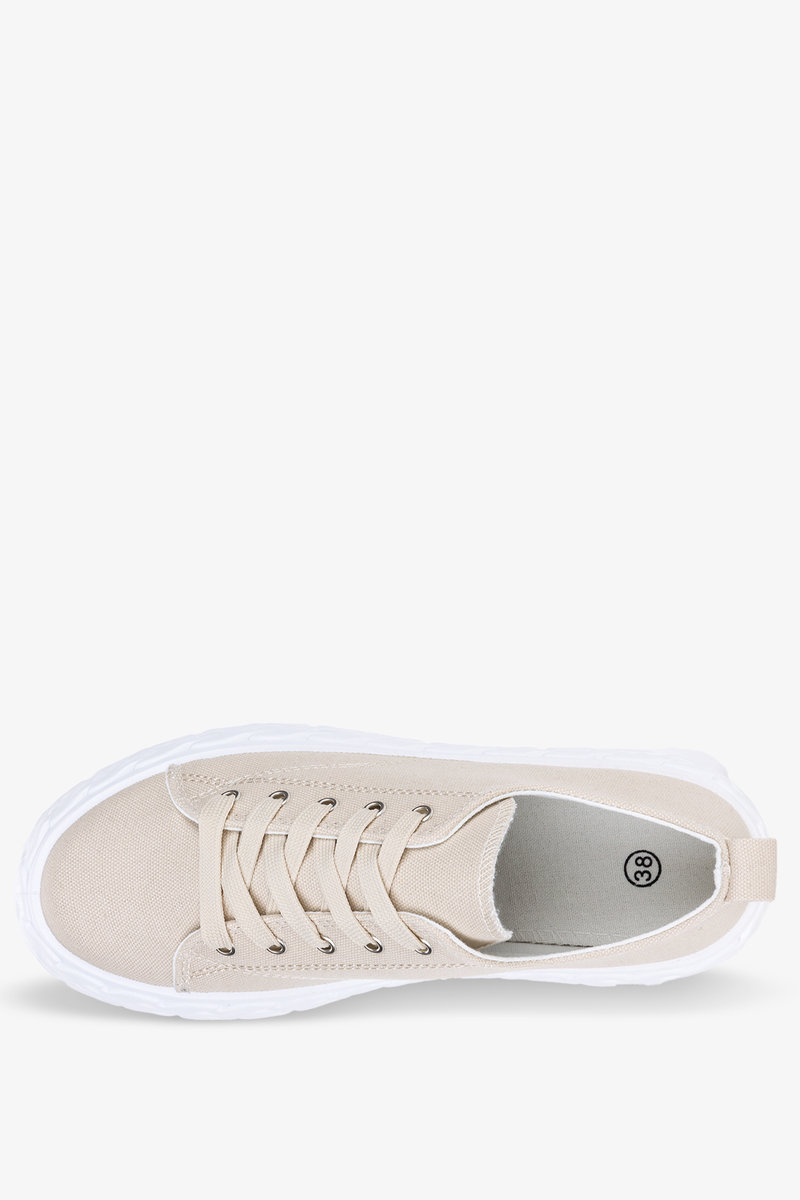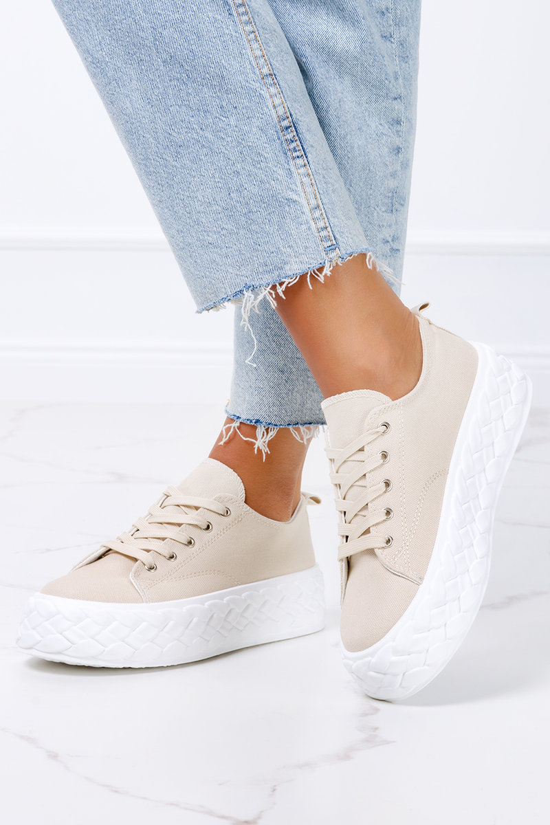 Beżowe trampki creepersy na ozdobnej platformie buty sportowe sznurowane Casu RE15P