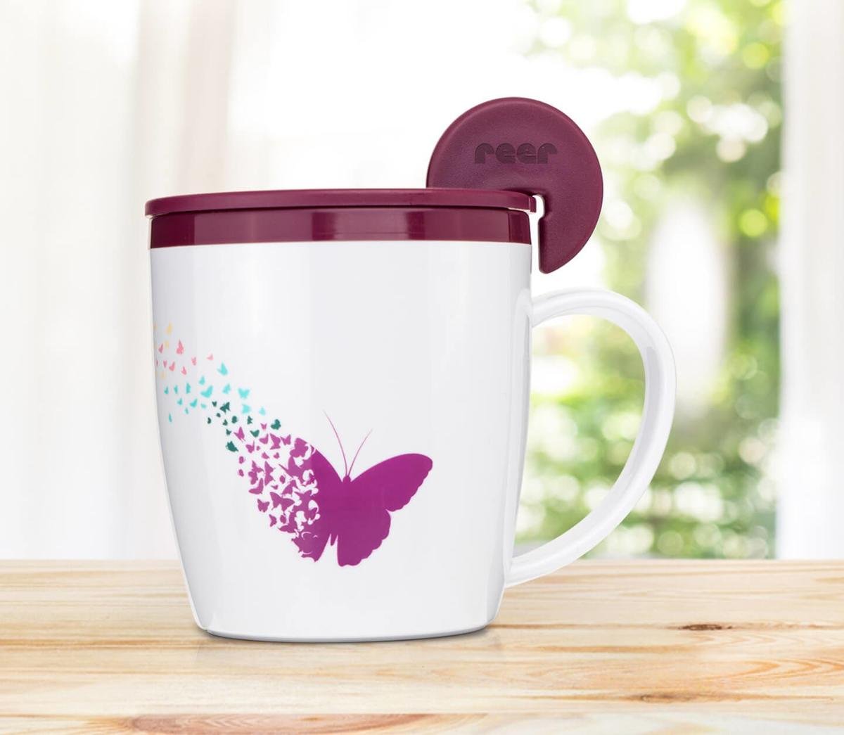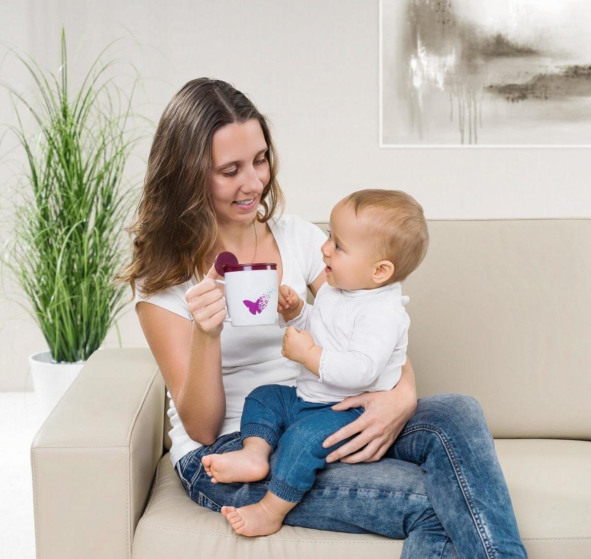 Kubek na gorące napoje z bezpieczną przykrywką - MommyLine. Chroni przed oparzeniem gorącą kawą/ herbatą. Produkt dedykowany specjalnie do młodych mam - niezastąpiony gdy trzymasz w rękach swoją pociechę, ale nadal chcesz wypić poranną kawę. Kubek ten minimalizuje ryzyko oparzenia Twojej pociechy. Sprytny, przemyślany mechanizm - lekki ruch Twojego kciuka pozwala napić się kawy/herbaty, ale wystarczy, że zdejmiesz palec z przycisku, kubek natychmiast sam się zamknie. Dzięki temu możesz swobodnie korzystać z kubka jedną ręką.