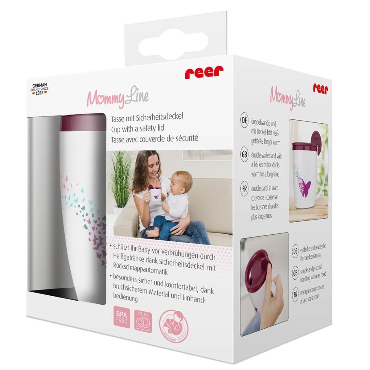 Kubek na gorące napoje z bezpieczną przykrywką - MommyLine. Chroni przed oparzeniem gorącą kawą/ herbatą. Produkt dedykowany specjalnie do młodych mam - niezastąpiony gdy trzymasz w rękach swoją ...