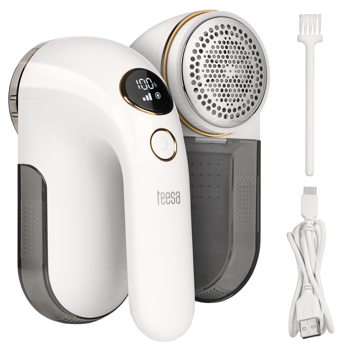 Przywróć swoim ulubionym ubraniom nowy blask i ciesz się ich perfekcyjnym wyglądem na co dzień. Pomoże Ci w tym bezprzewodowa golarka do ubrań Teesa TSA0213, która dzięki 6 ostrzom ze stali nierdzewnej gwarantuje szybkie i skuteczne usuwanie zmechaceń. Wygodę i higienę użytkowania zapewnia łatwy do czyszczenia i monitorowania poziomu zapełnienia pojemnik.
