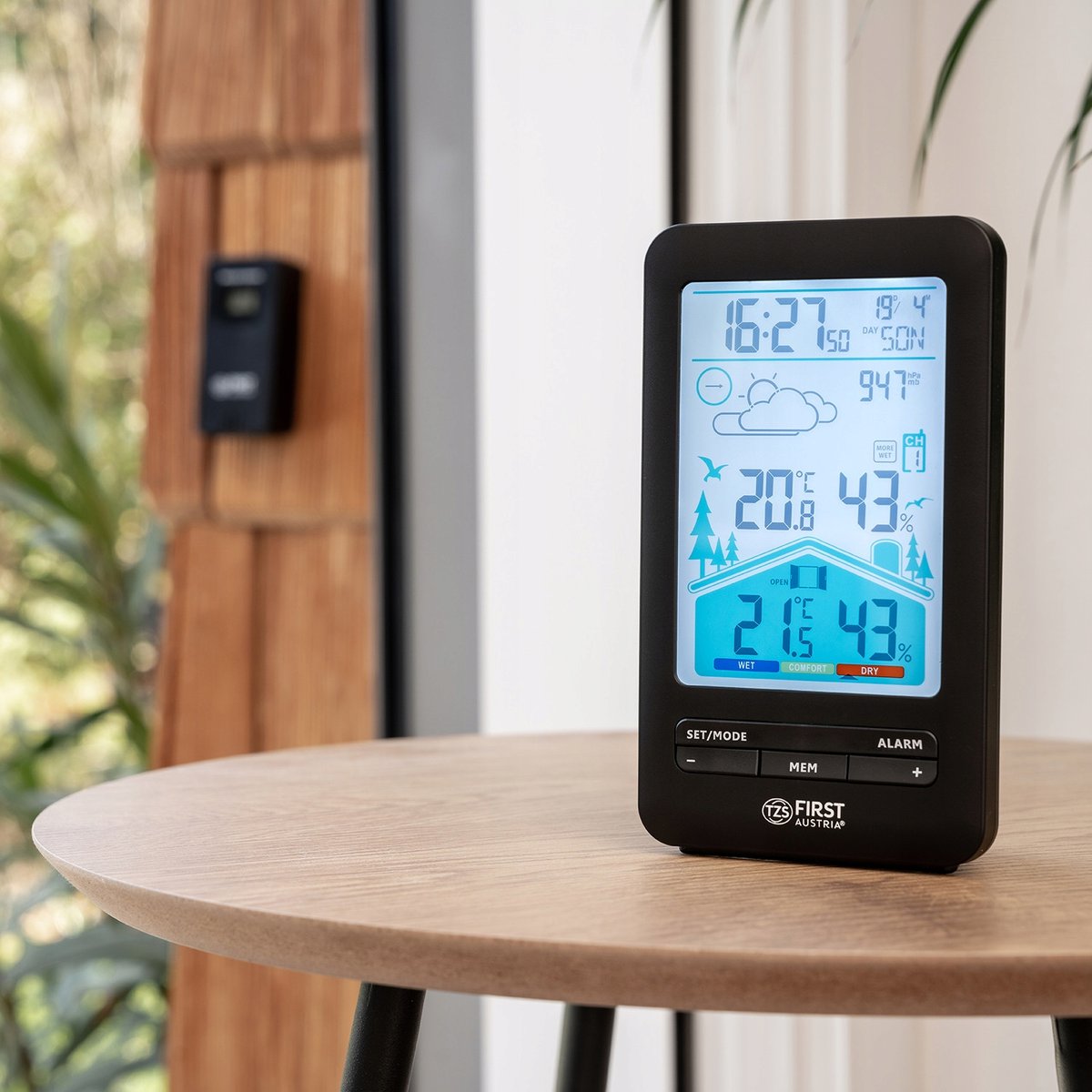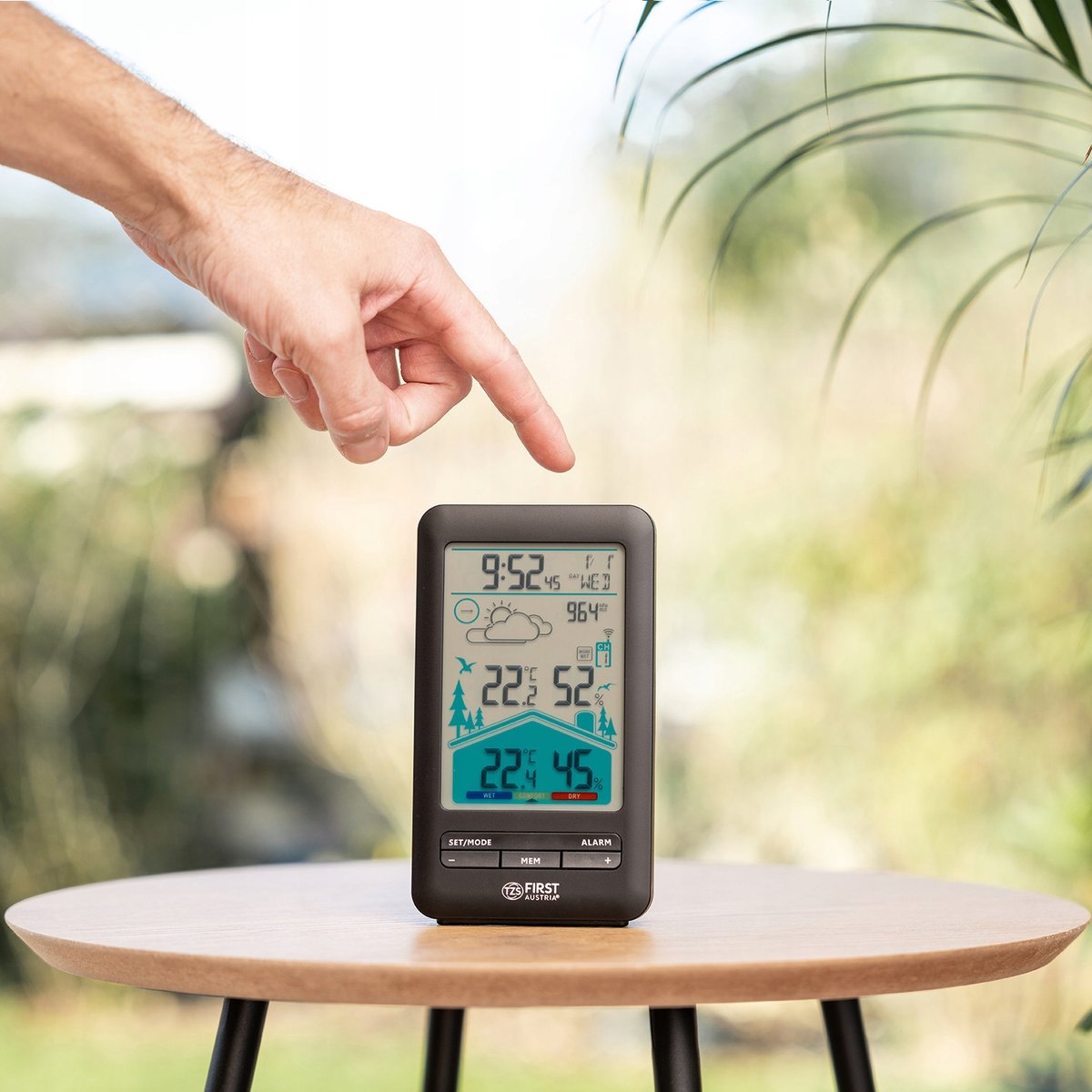 Jeżeli cenisz sobie funkcjonalne urządzenia, ta stacja pogody jest dla Ciebie. Nie tylko mierzy temperaturę i wilgotność w pomieszczeniu, ale dzięki załączonemu czujnikowi zmierzy je także na zewnątrz.