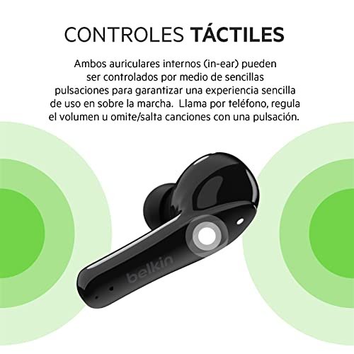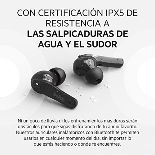 Bezprzewodowe słuchawki Belkin, SOUNDFORM Move Plus True Bezprzewodowe słuchawki Bluetooth z bezprzewodowym etui do ładowania, Odporność na pot i wodę IPX5, Potężny bas, iPhone, Android i inne Te ...