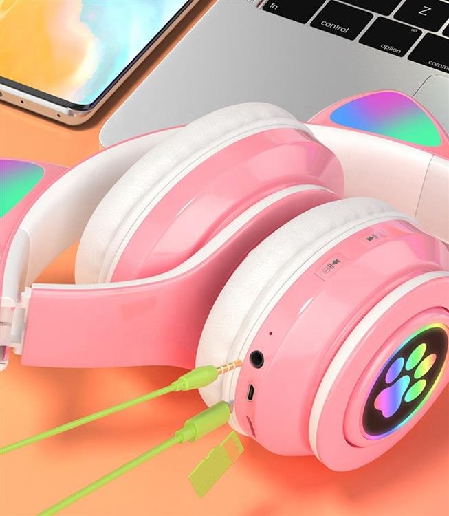 Wygodne, bezprzewodowe słuchawki nauszne dla dzieci. Charakterystyczne kocie uszy z podświetleniem LED pozwolą Twemu dziecku wyróżnić się z otoczenia. Wykorzystanie szybkiego modułu Bluetooth 5.0 umożliwia wygodne korzystanie z urządzenia (zasięg do nawet 10 metrów). Zasilane z pomocą wbudowanego akumulatora To świetny i bardzo praktyczny gadżet dla osób aktywnych oraz wszystkich tych którzy cenią sobie wygodę użytkowania sprzętu. Wygodne wkładki nauszne oraz redukcja szumów wygłuszają dźwięki docierające z zewnątrz, znacznie podnosząc jakość odtwarzanej muzyki. Przemyślana konstrukcja czyni je niezwykle lekkimi i wygodnymi. Wbudowane fizyczne przyciski ułatwiają sterowanie funkcjami słuchawek. Wyposażone we wbudowane radio FM oraz czytnik kart pamięci microSD z odtwarzaczem MP3 umożliwiają korzystanie z urządzenia bez łączenia się ze smartfonem.