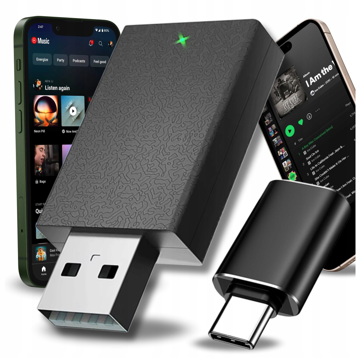 - Adapter nie wymaga instalacji dodatkowych aplikacji. Wystarczy standardowy system Android Auto lub Apple CarPlay.