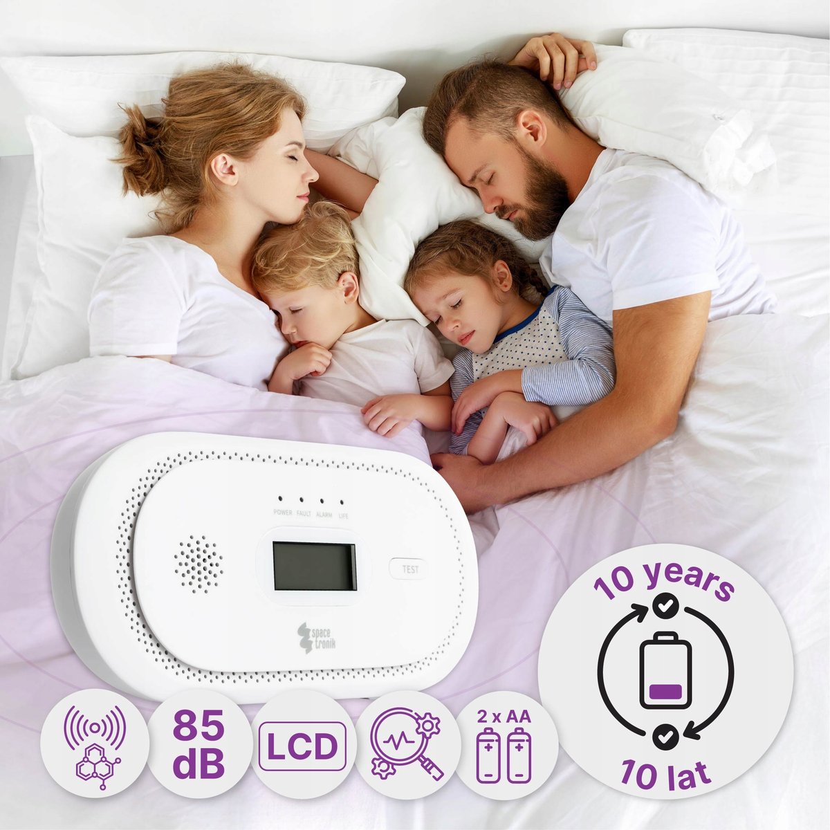 - Alarm dźwiękowy ≥85 dB: Głośny sygnał ostrzega w razie zagrożenia – usłyszysz go w całym domu.