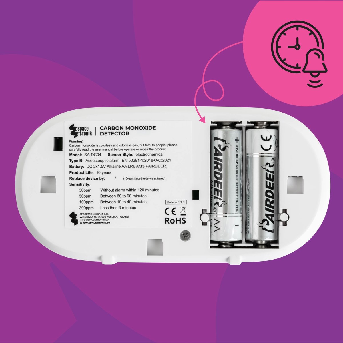 | Nazwa: | BEZPRZEWODOWY Czujnik Czadu wolnostojący 85dB Spacetronik miernik CO bateri |