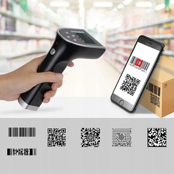 ✅ Kolorowy wyświetlacz LCD – pokazuje podgląd skanowanych kodów, poziom naładowania baterii oraz status transmisji.