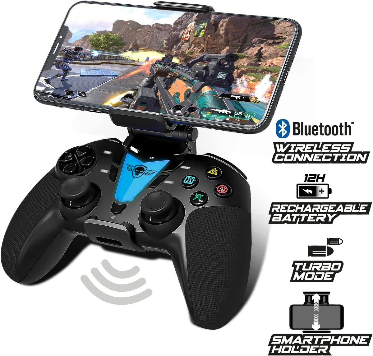 Podłącz kontroler i zacznij grać: PREDATOR jest typu plug and play, nie wymaga skomplikowanego oprogramowania ani procesu instalacji. Predator łączy się z urządzeniem za pomocą technologii Bluetooth i współpracuje ze wszystkimi grami i aplikacjami mobilnymi, które umożliwiają korzystanie z kontrolera telefonu.Bezprzewodowy kontroler BLUETOOTH: Koniec z trudnymi do wykonania poleceniami na ekranie dotykowym! Zamień swój smartfon w prawdziwą konsolę do gier. Ten kontroler jest kompatybilny z wieloma platformami, działa ze wszystkimi telefonami, tabletami, telewizorami z systemem Android, Apple TV, PlayStation 4/3, a nawet z komputerem tylko w trybie przewodowym.Ponad 12 godzin autonomii! Wbudowany akumulator litowy 600 mAh zapewnia wygodny czas pracy na baterii. Możesz nawet kontynuować grę podczas ładowania kontrolera. Kontroluj poziom naładowania baterii za pomocą wskaźnika LED (kabel USB-C w zestawie). Jeśli chcesz zmapować klawisze, to nic prostszego, przejdź do ustawień swojej gry.Uchwyt na telefon w zestawie: uchwyt na smartfon jest zdejmowany. Jest kompatybilny ze smartfonami o szerokości 8,5 cm. Wyposażony w silikonowe podkładki bezpiecznie utrzymuje Twój smartfon. Regulacja nachylenia stojaka zapewnia optymalną ergonomię i komfort.